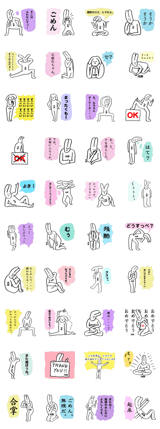 内野さん専用スタンプ。ウサギによるちょっとキュートで、かなりシュールすぎて逆に使えるスタンプ。"