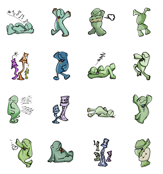 | スタンプ説明 | original characters inspired stuffed frog and potari(my ceramic objects) |
