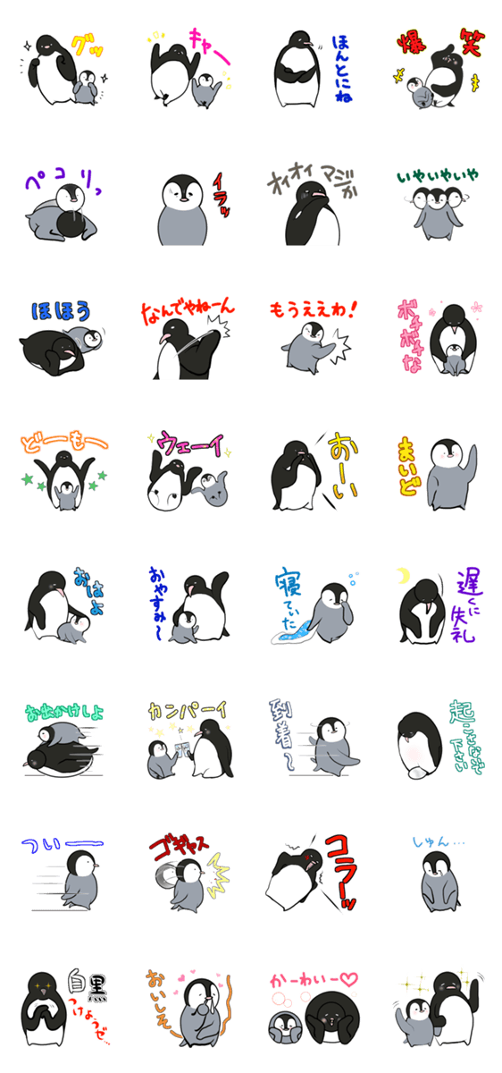 お笑いペンギンコンビのスタンプ。冷えた空気も泳ぎ切ります。