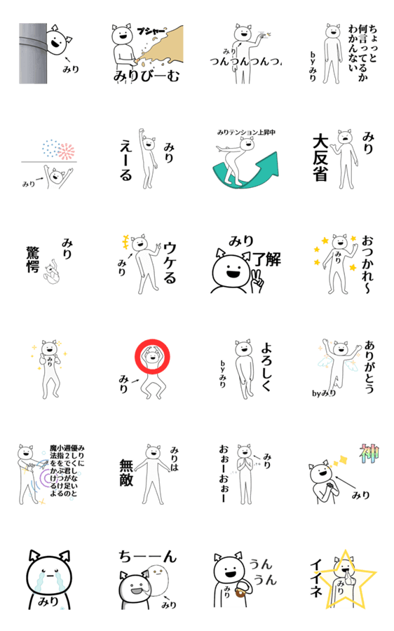 | スタンプ説明 | 超スムーズ!「みり」がゆる動く名前スタンプ。みりちゃん/ミリ/みりの/みりか/みりな/みりの/美里/未莉/実梨/実理/実里/巳梨/巳理/美利/光梨/光璃/実凛/未梨/海璃/等/専用 |