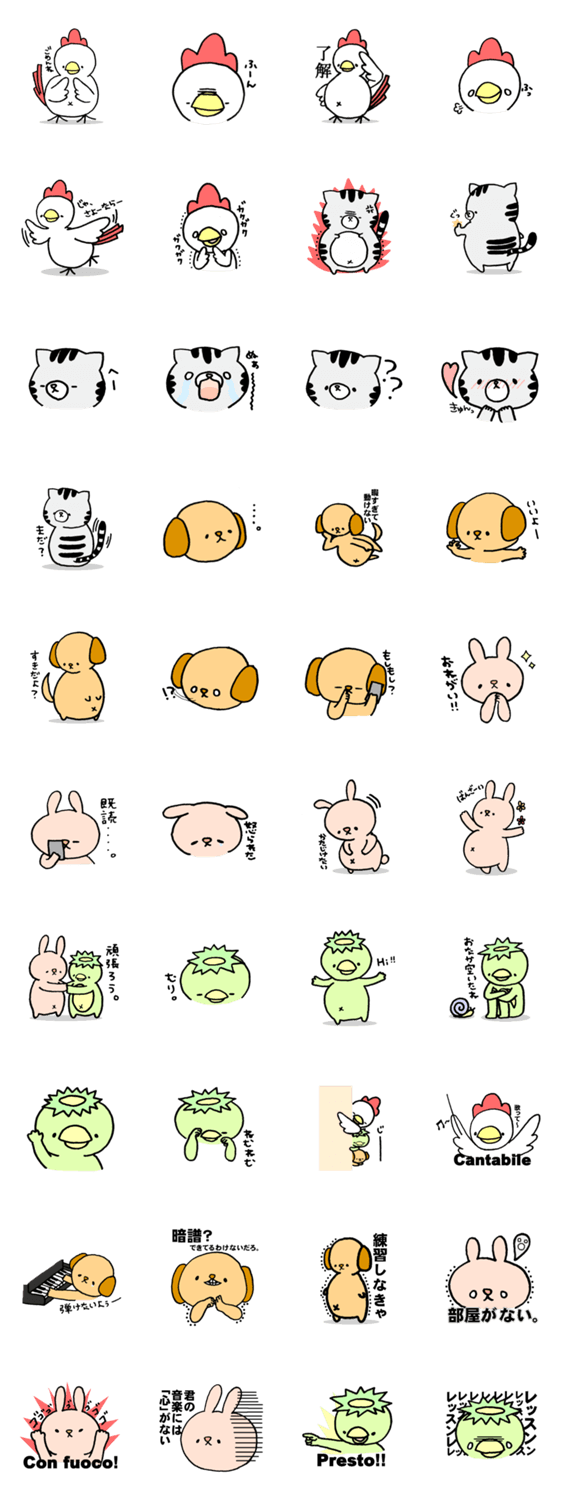 ちょっとおでぶな動物たちがかわいいスタンプになりました!日常でも使いやすいスタンプを中心にしつつ、音楽を愛する者にも必見!?
