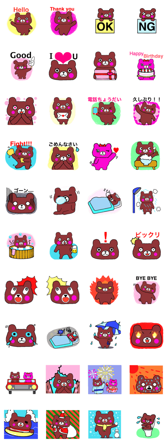 クマのマックスくんとガールフレンドのミリーちゃん。マックスの表情豊かな楽しいスタンプです。