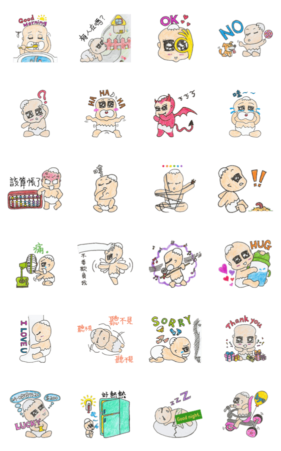 | スタンプ説明 | Eggshell baby's heart is fragile as eggshell. A pair of beautiful big eyes are always watery. Please love me. |