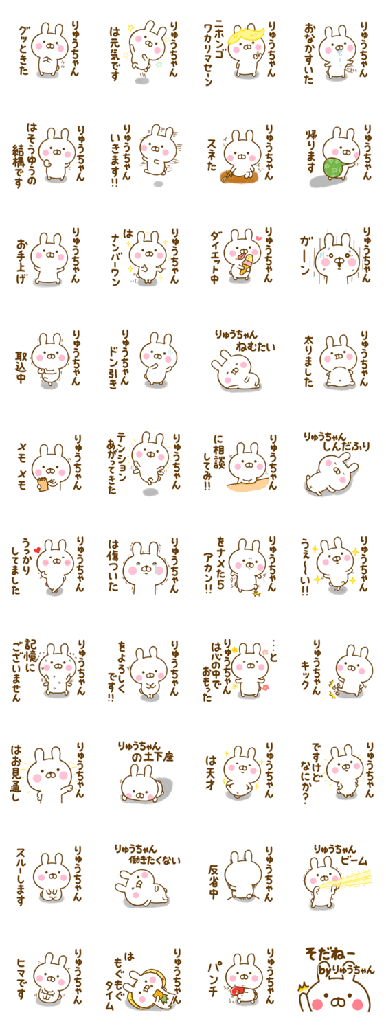 ゆる~く、かわいい、うさぎ(うさひな)の☆りゅうちゃん☆が使う名前スタンプ第2弾です♪