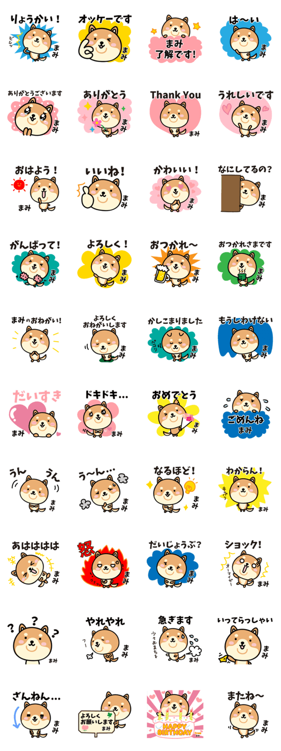 まみ(真美、真実など)専用のゆるい柴犬です。自分専用の名前スタンプでトークを盛り上げよう☆