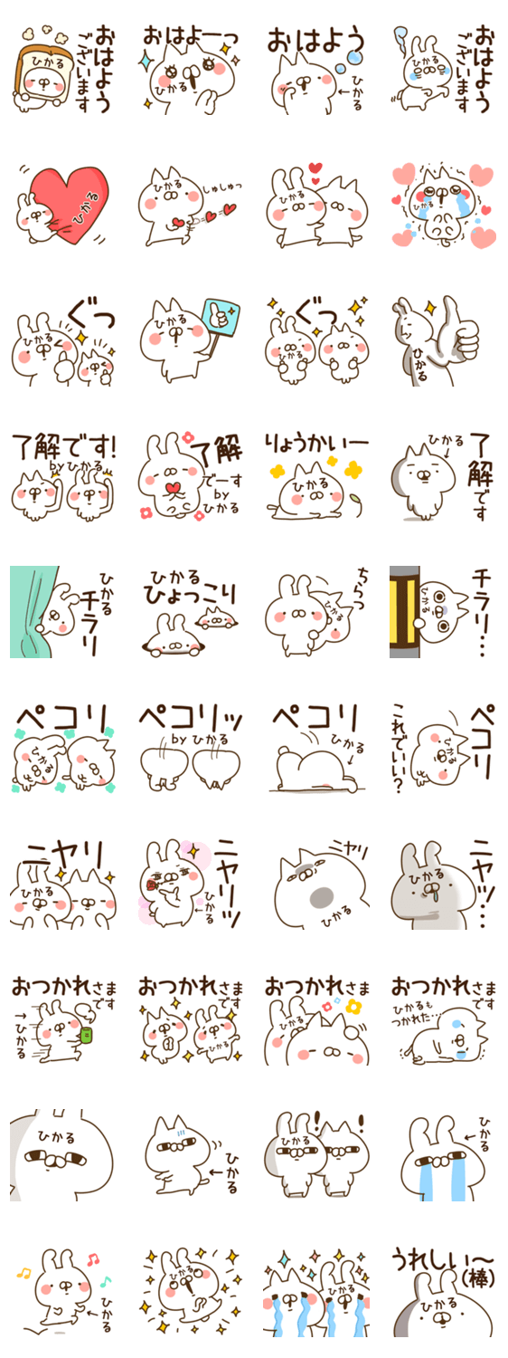 | スタンプ説明 | ひかる/ちゃん/さん/くん/が使える/名前/あだ名/名字/スタンプ続編/輝/晃/光/燿/光流/光琉/光瑠/旺/晄/晶/暉/洸/煕/照/玄/玉/皓/陽/光留/輝流/星/月/専用/山田まぽん作 |
