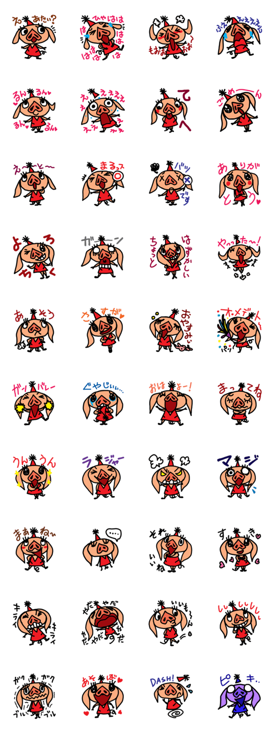 スタンプ説明 ノリノリの子豚ちゃん「パーリーブー」のスタンプ。