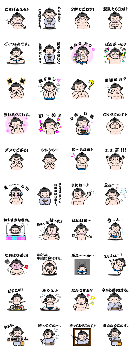 | スタンプ説明 | 私は相撲取りです。 たまに悩むこともあるけれど、日々精進しております。 どうぞ使ってやってくださいね♪ |