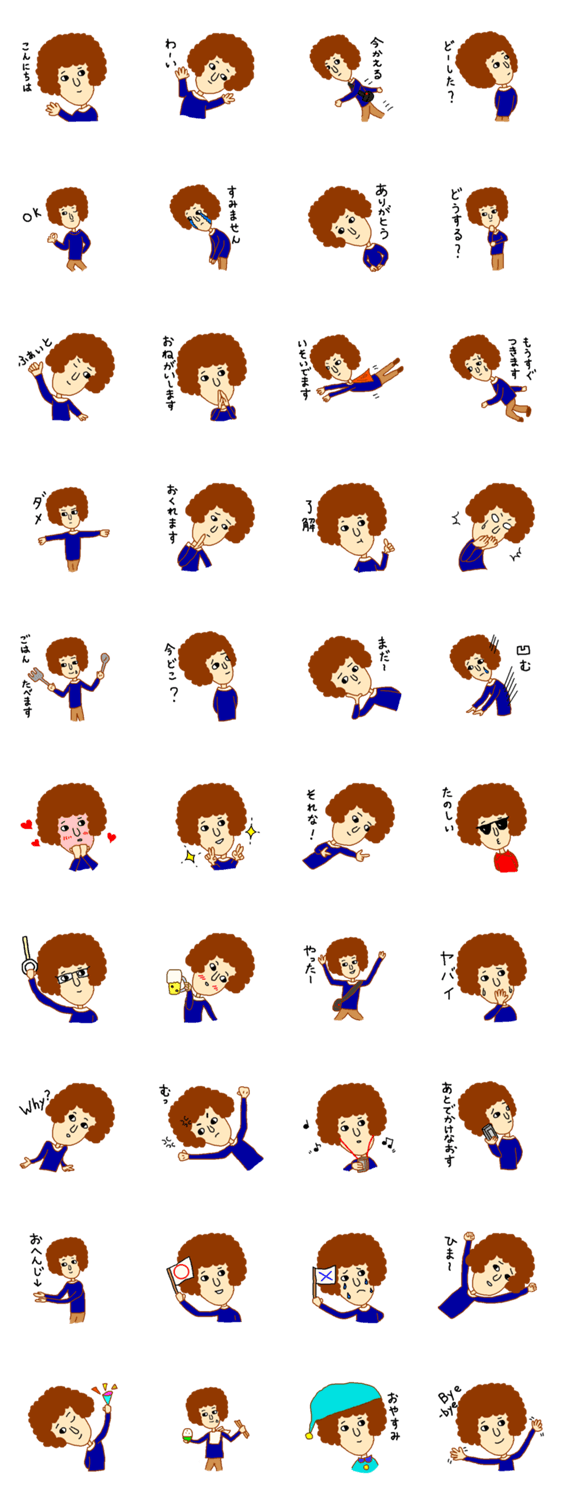 アフロヘアのモフの楽しいスタンプです。是非使ってみてくださいね。宜しくお願い致します。