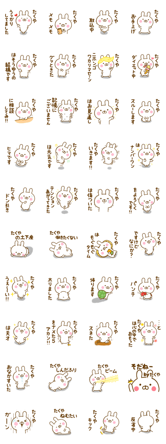ゆる~く、かわいい、うさぎ(うさひな)の☆たくや☆が使う名前スタンプ第2弾です♪