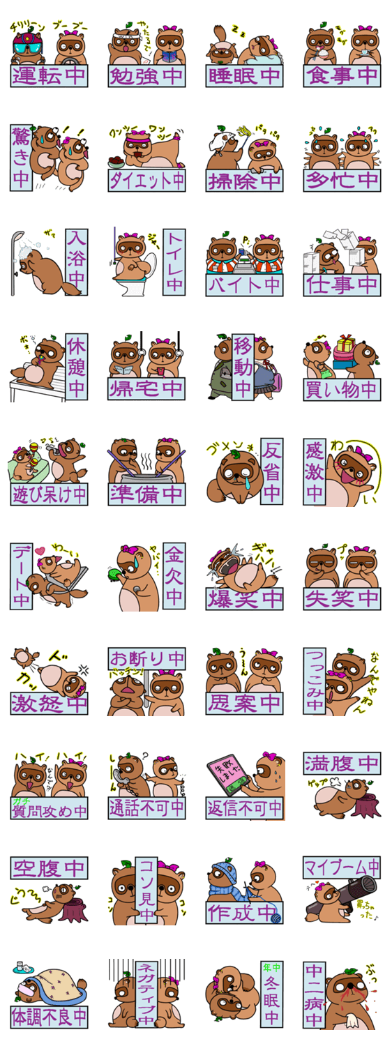 二匹のかわいいtanukiがあなたに代わってお知らせしてくれるスタンプです