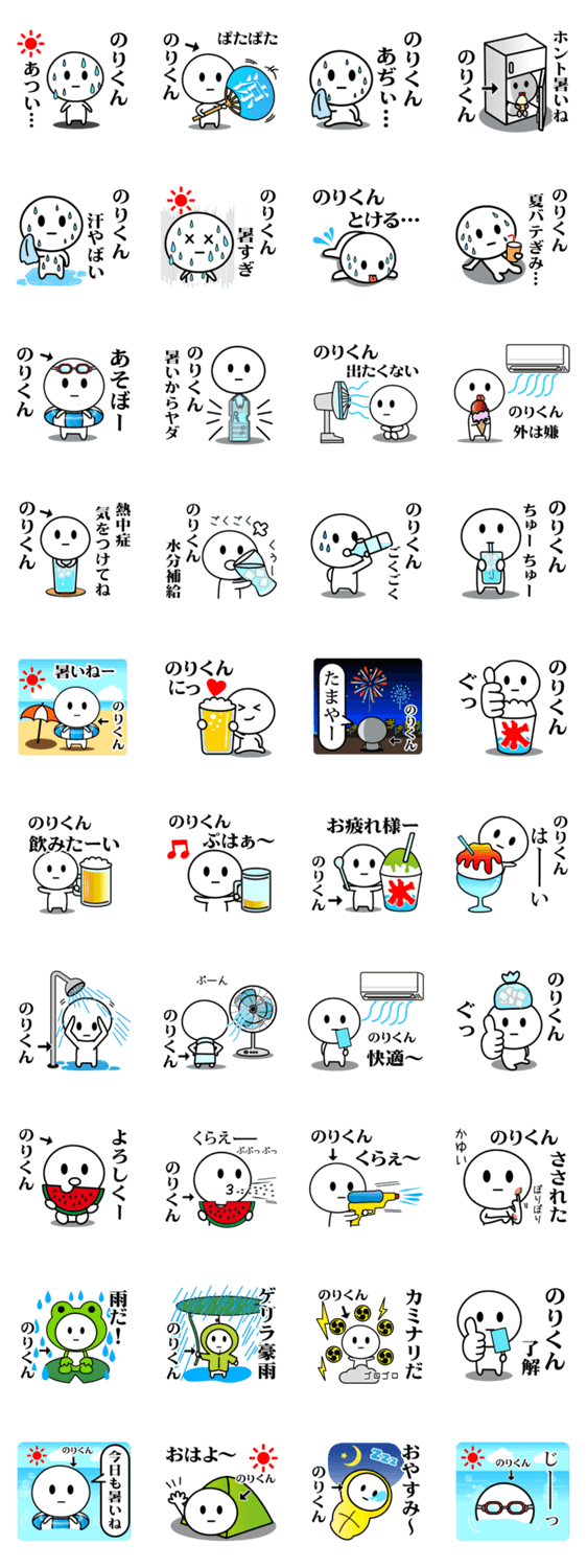 | スタンプ説明 | のりあき/のりひこ/のりひろ/のりはる/のりかず/のりまさ/のりゆき/のりひで/のりふみ/のりかつ/のりたか/のりお等【のりくん】の名前入り、暑い夏にお勧めのスタンプ |