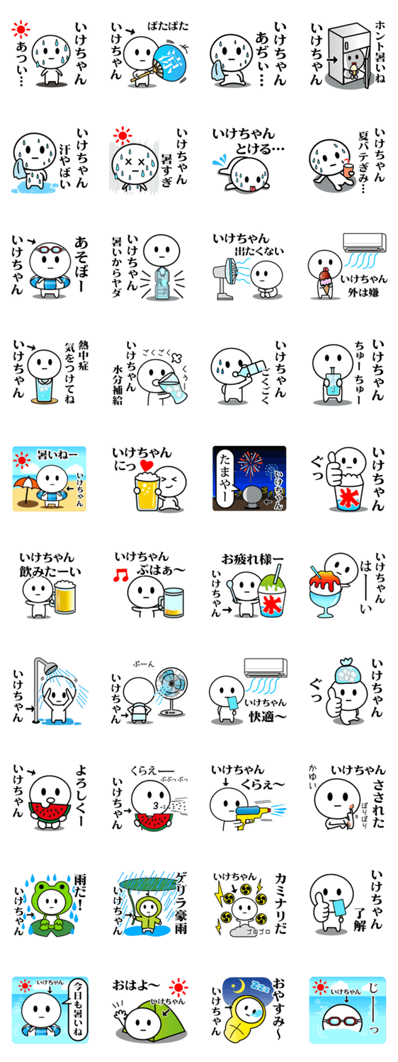 | スタンプ説明 | いけだ/いけうえ/いけもと/いけなが/いけなか/いけえ/いけお/いけした/いけの等、【いけちゃん】の名前入り、暑い夏にお勧めのスタンプ |
