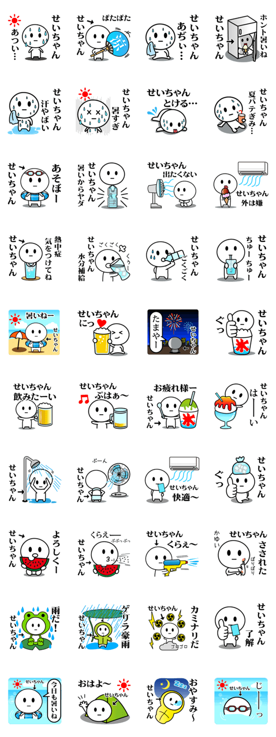 | スタンプ説明 | せいこ/せいか/せいな/せいじ/せいや/せいき/せいたろう/せいのすけ/せいいち等、【せいちゃん】の名前入り、暑い夏にお勧めのスタンプ |
