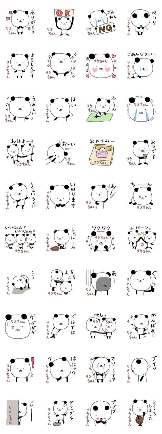 「りさ」ちゃん専用スタンプ(パンダ) -LINEスタンプマニア