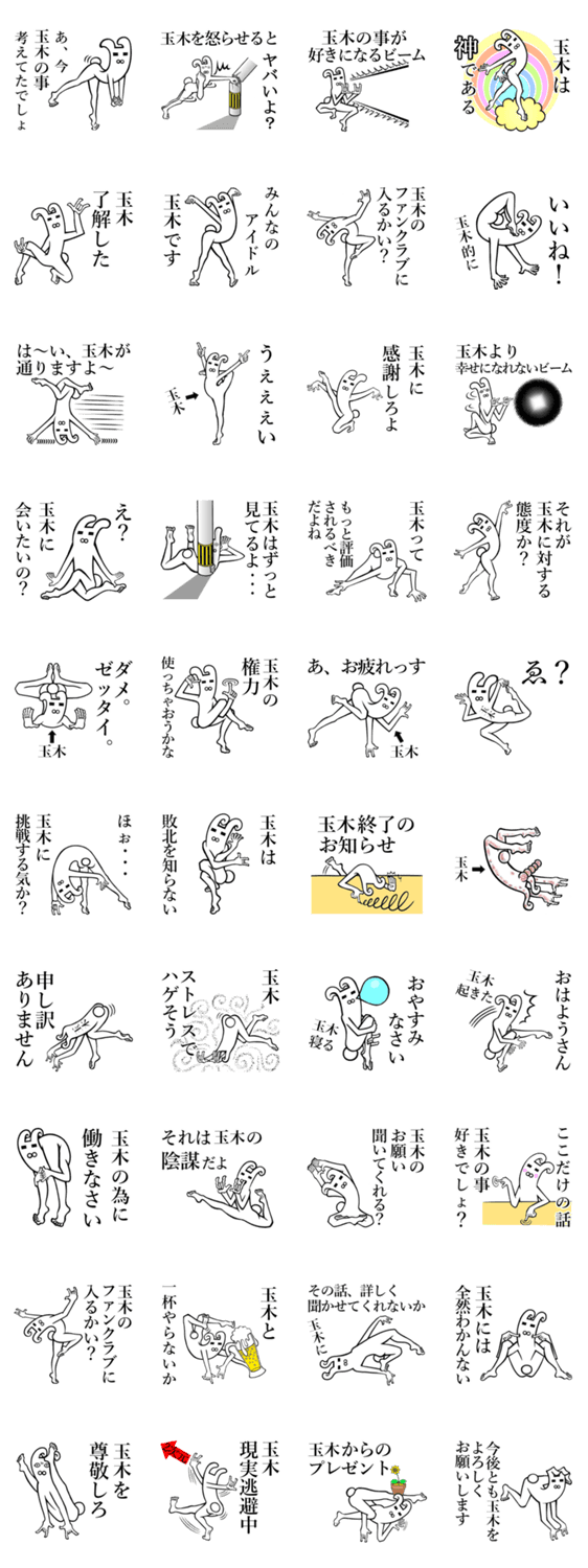 | スタンプ説明 | 名前/名字が【玉木/たまき】スタンプ。玉木/タマキ/たまちゃん/タマチャン/玉木君/たまきくん/タマキクン/たまっち/タマッチ/たまりん/タマリン/たまるん/タマルン/さん。 |