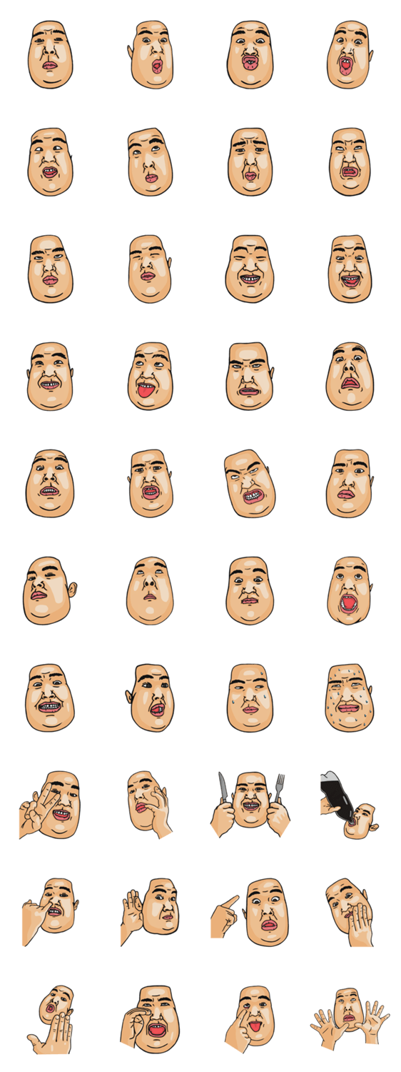 ちょっとリアルな太っちょさんの顔スタンプ。様々な表情をお楽しみ下さい。
