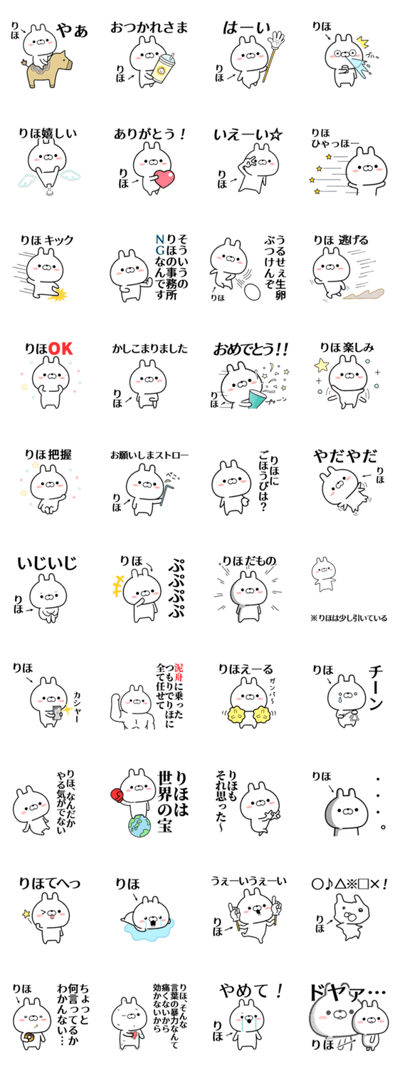 | スタンプ説明 | 「りほ」が使う無難なゆるい名前スタンプの第2弾です。りほちゃん/理穂/梨帆/里穂/莉歩/莉穂/里保/里歩/梨穂/理歩/莉帆/李穂/リホ/りりほ/りほか/りほな/りほみ/など/専用 |