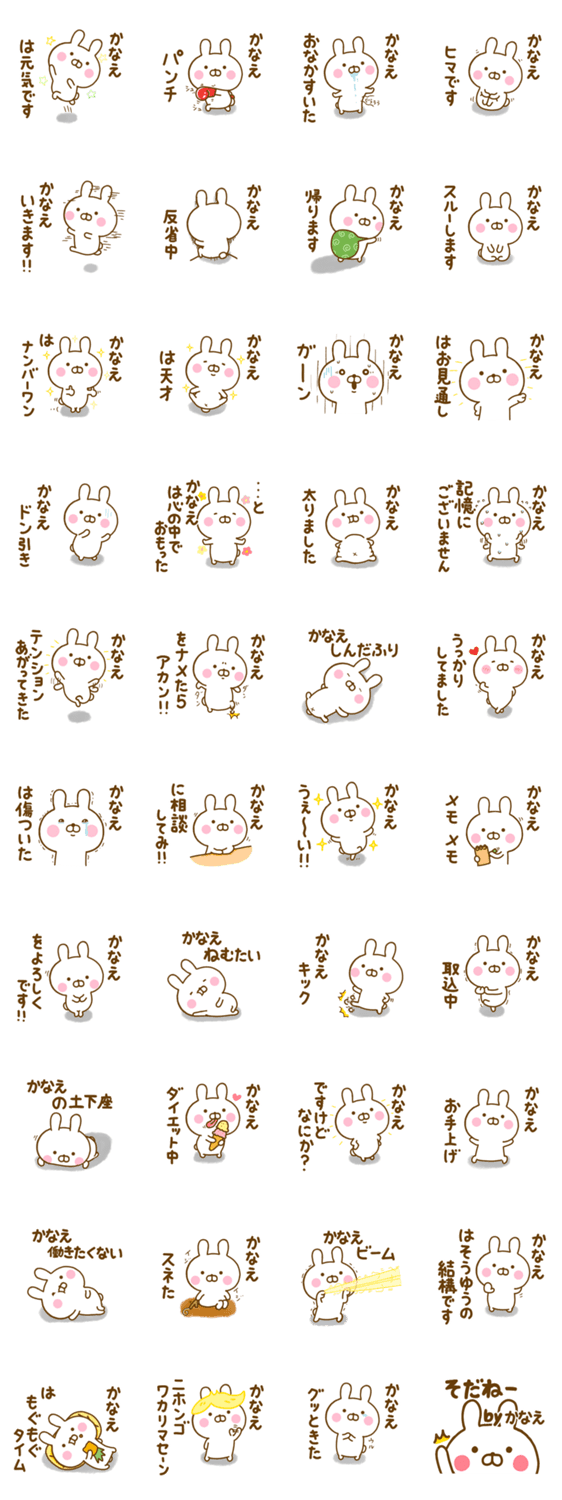ゆる~く、かわいい、うさぎ(うさひな)の☆かなえ☆が使う名前スタンプ第2弾です♪
