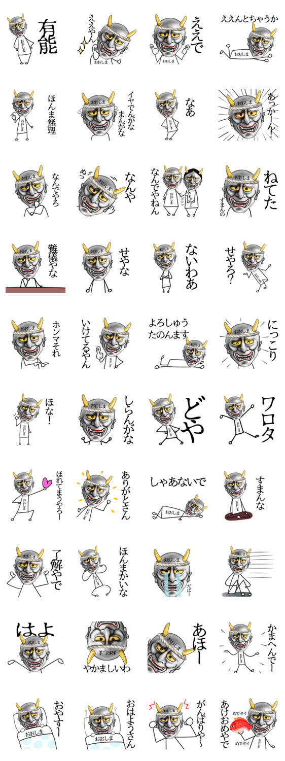 | スタンプ説明 | Ooshima おおしま オオシマ 大島 大嶋 大嶌 大縞用の個性的でインパクトがある関西弁のなまえ入り般若スタンプ♪ |