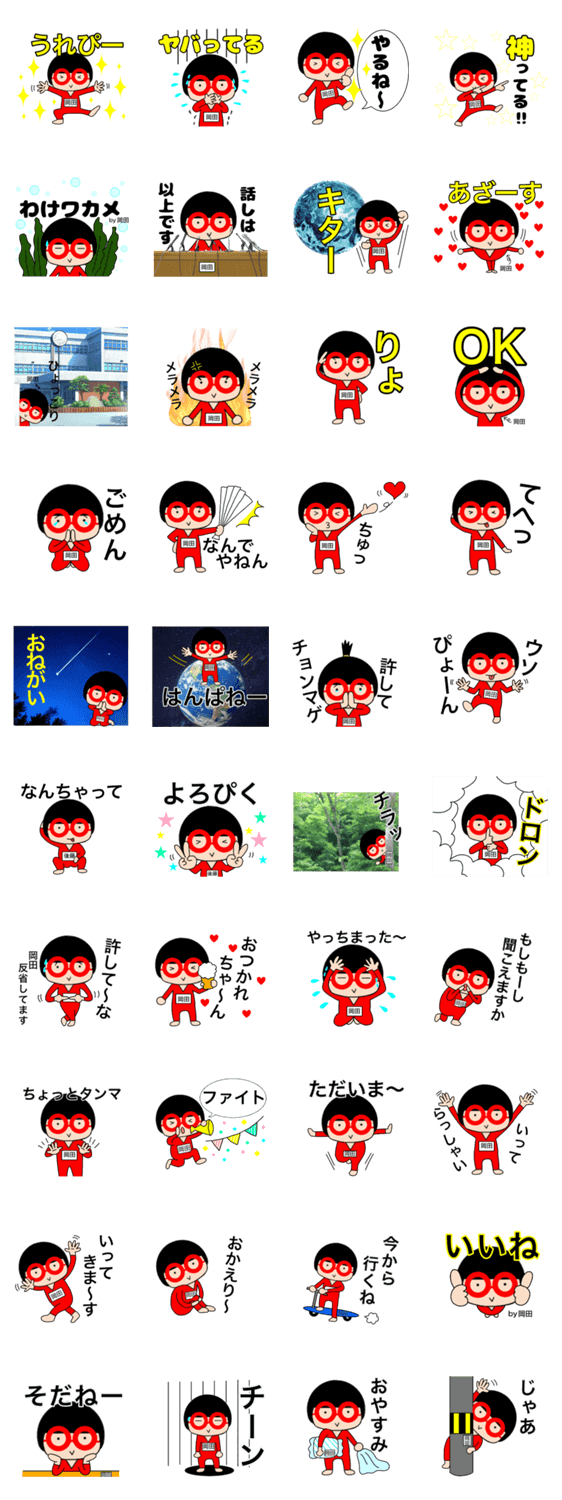 名前スタンプ赤メガネ【岡田】 -LINEスタンプマニア