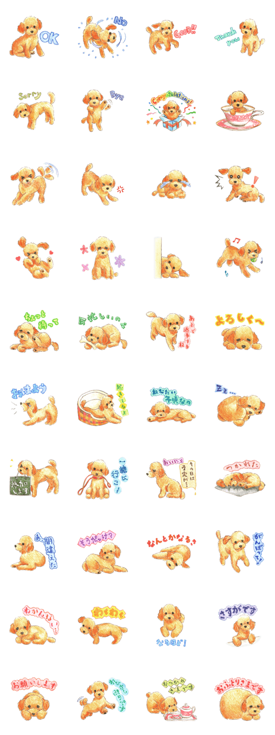 | スタンプ説明 | ヨーキーに続き、色鉛筆で描くほのぼのわんこシリーズ第2弾! もこもこふわふわぬいぐるみみたいな犬、トイプードルのスタンプです。 |