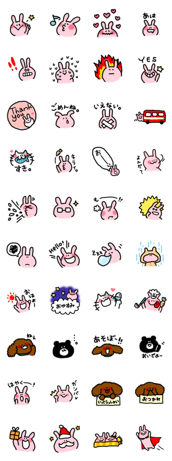 うさこと、仲良しのわんこ、にゃんこ、くまさんのいちにち。