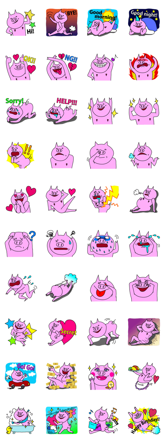 かわいい豚、ミス ポットベリーのスタンプです!いろいろな表情をお楽しみください♪