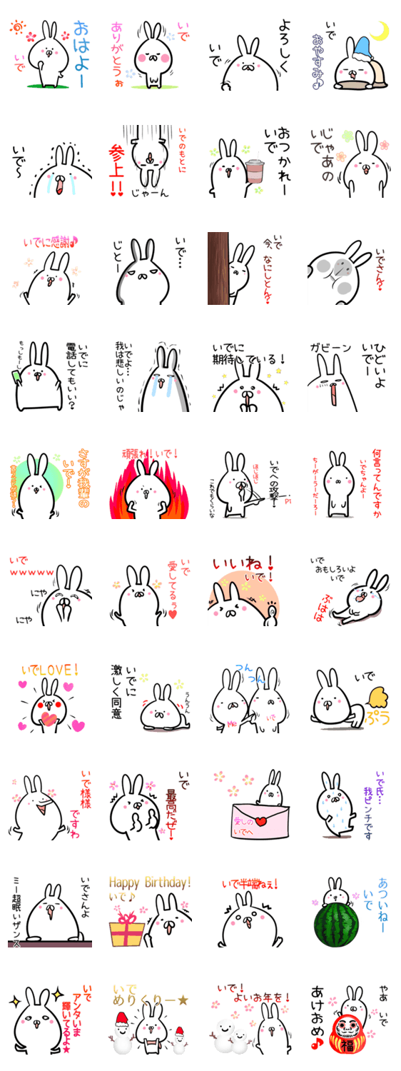 | スタンプ説明 | Ide いで イデ 井手 井出 出手 伊出さんへ送る専用の可愛いウサギのゆるい名字/苗字/なまえ/あだ名スタンプ。誕生日祝い,クリスマス,お正月挨拶入♪ |