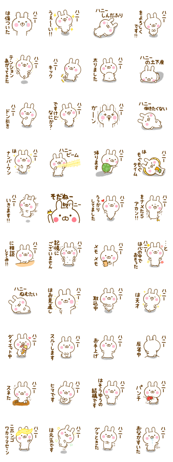 ゆる~く、かわいい、うさぎ(うさひな)の☆ハニー☆が使う名前スタンプ第2弾です♪