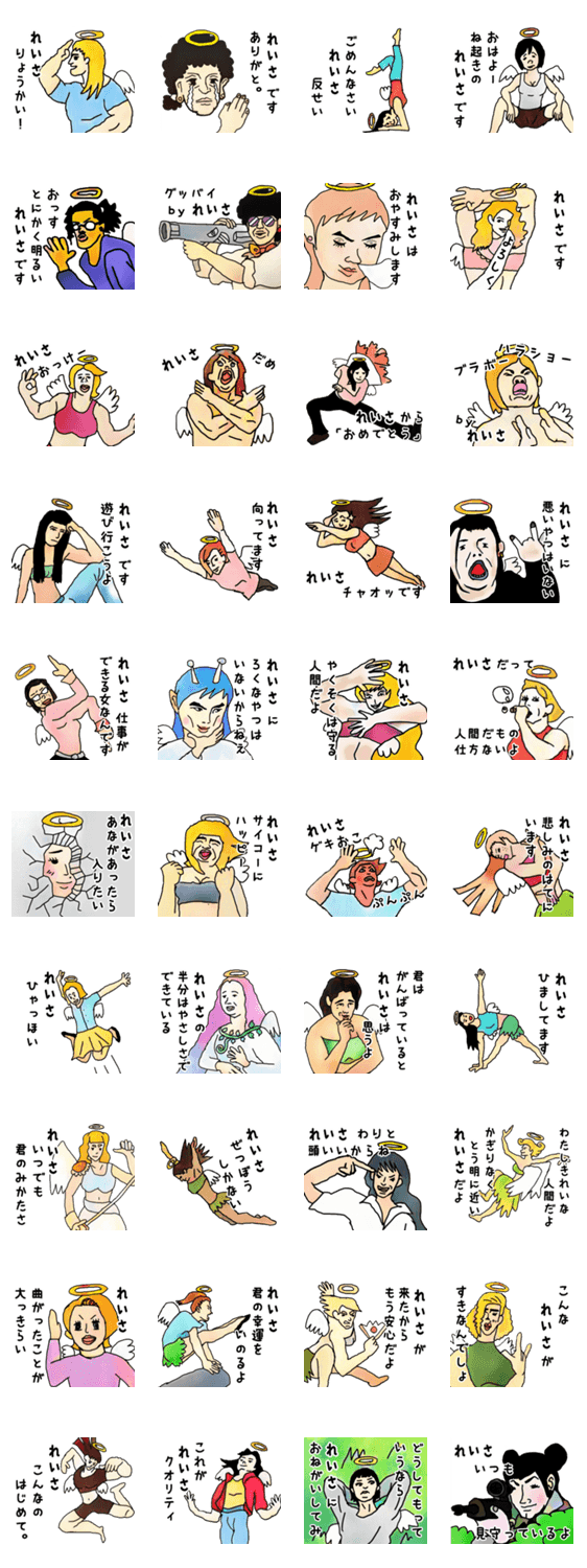 | スタンプ説明 | 日常フレーズから少しマニアックなフレーズまで、ちょいイラ天使系のれいさ専用名前入りスタンプです。レイサ/れいさなどのなまえの方に |