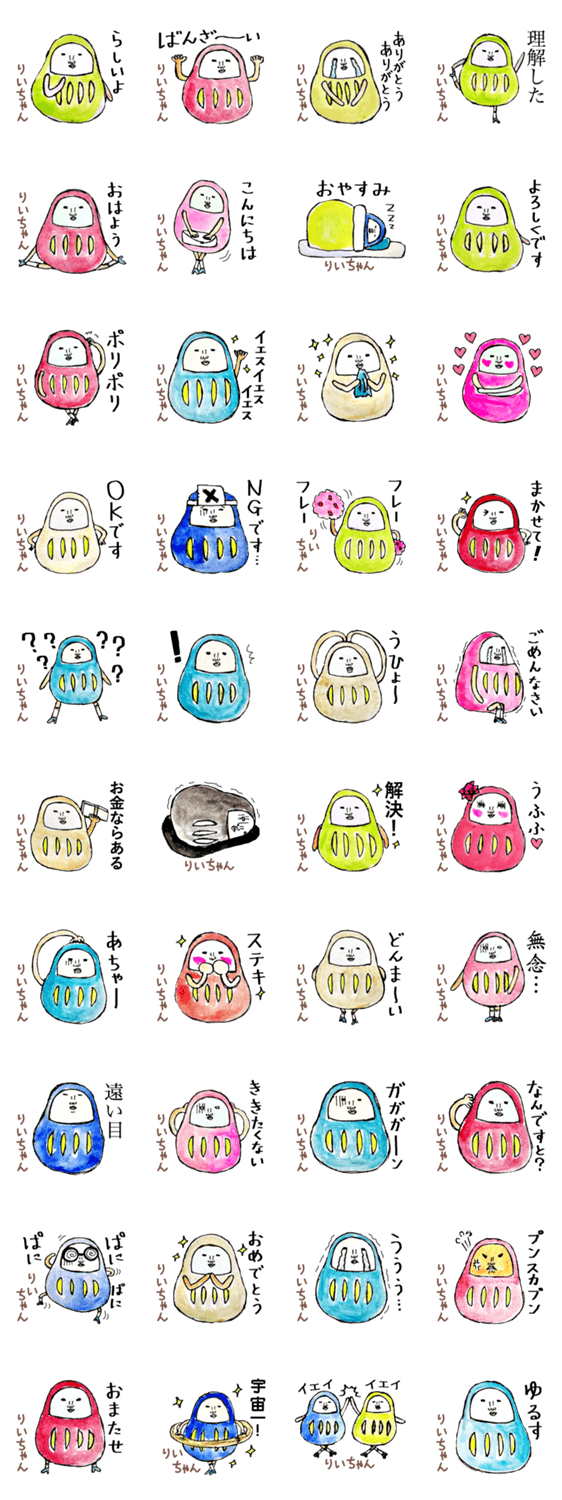 「りい」ちゃん専用スタンプ(だるま) -LINEスタンプマニア