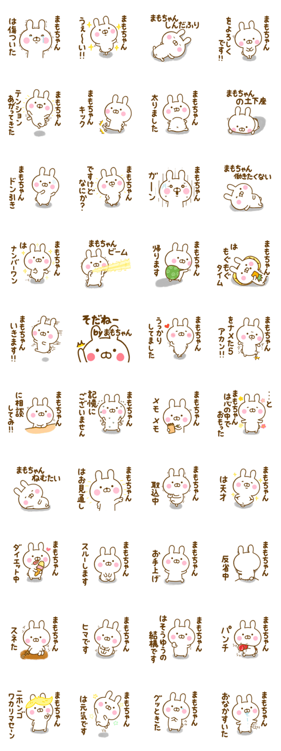 ゆる~く、かわいい、うさぎ(うさひな)の☆まもちゃん☆が使う名前スタンプ第2弾です♪