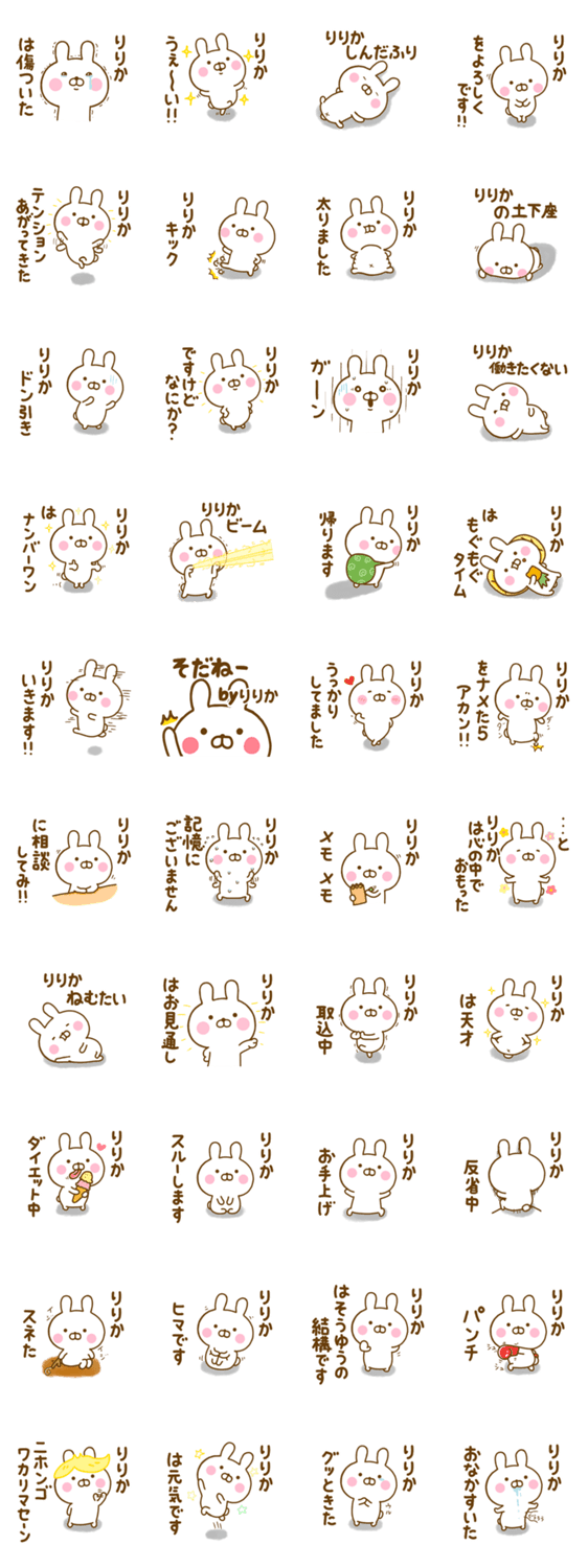 ゆる~く、かわいい、うさぎ(うさひな)の☆りりか☆が使う名前スタンプ第2弾です♪