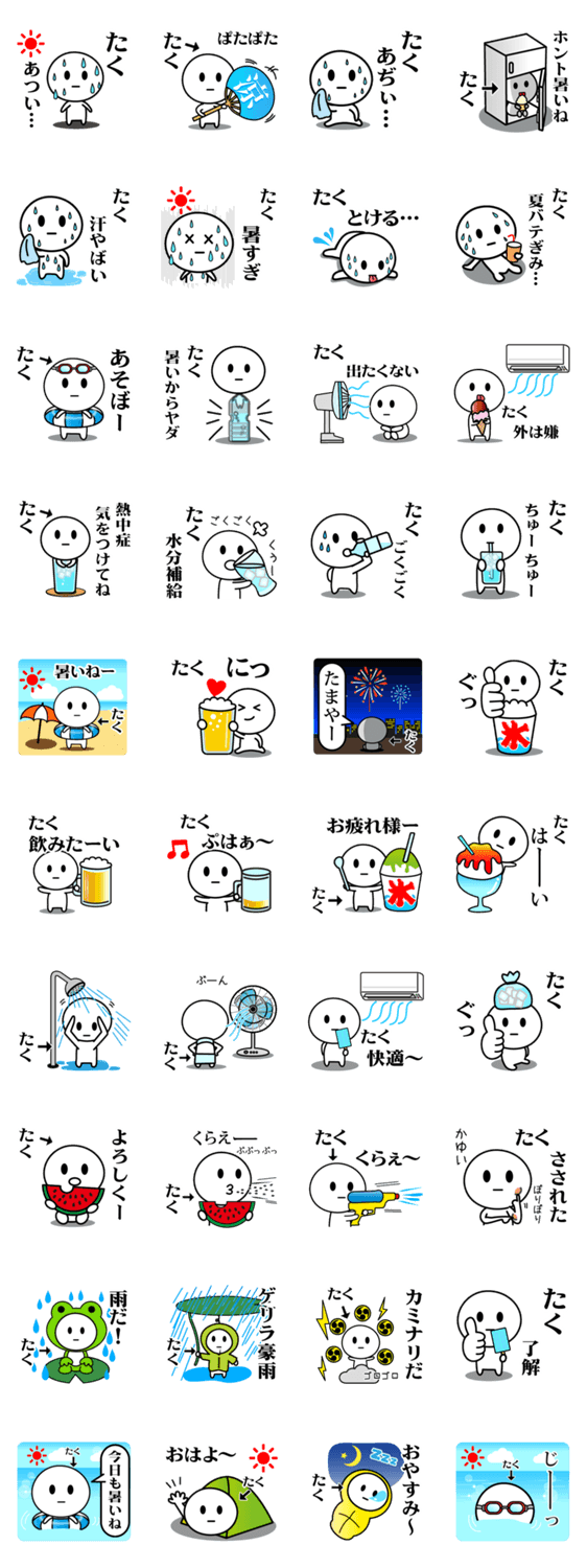 | スタンプ説明 | たくくん、たくちゃん、たくみ、たくや、たくと、たくじ、たくま、たくろう等、【たく】の名前入り、暑い夏にお勧めのスタンプ |