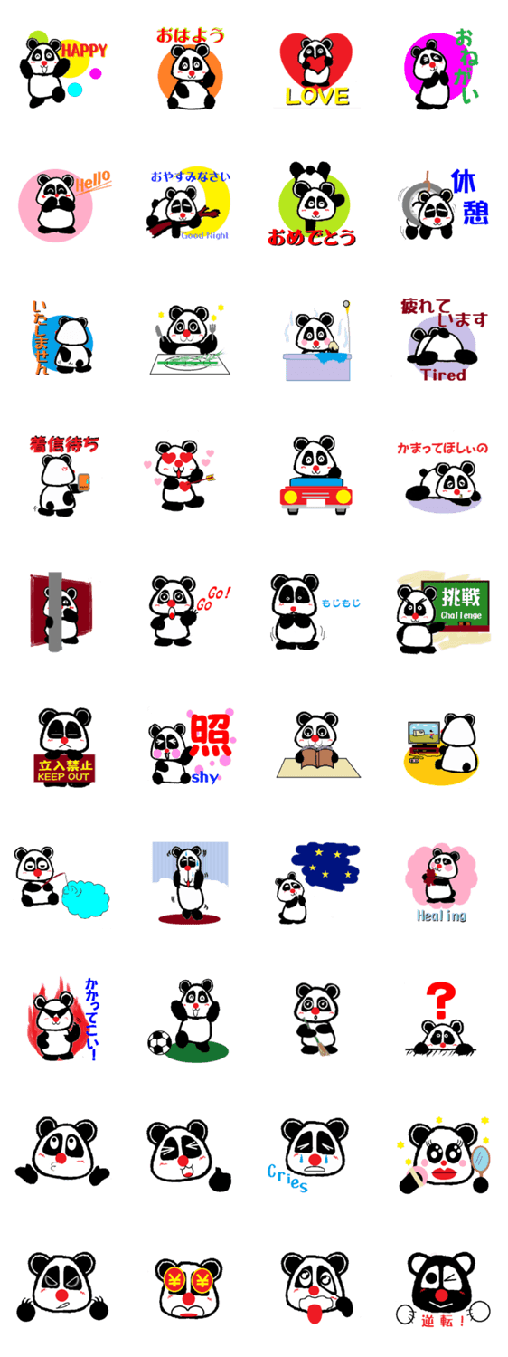 | スタンプ説明 | のんびりパンダに可愛い赤鼻をつけたオリジナル作品です。 |
