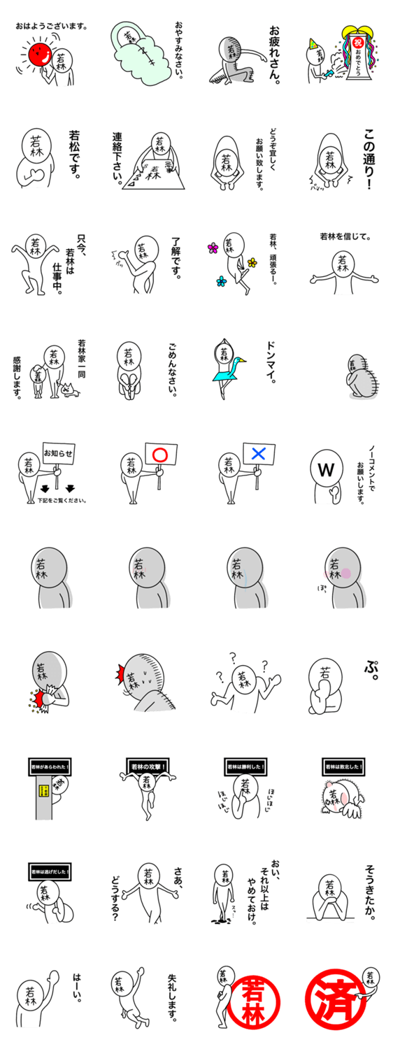 若林様が日常で使える、笑いあり、涙ありのスタンプとなっております☆基本的に使えるスタンプと、応用編とが混じり合ってるので、様々な人に使えます☆
