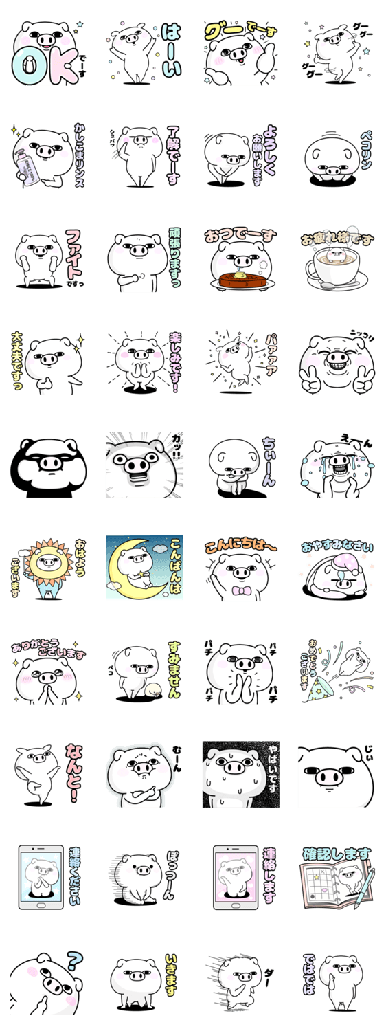 かわいいぶたさんのゆるい敬語のスタンプです。