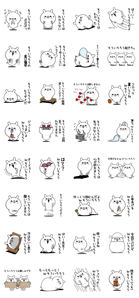 | スタンプ説明 | ソウイチロウ、創一朗、創一郎、壮一朗、壮一郎、奏一朗、奏一郎、宋一朗、宋一郎、宗一朗、宗一郎、将一朗、崇一郎、惣一郎、早一朗、早一郎専用 |