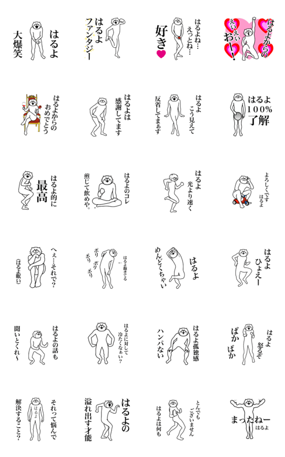 はるよちゃんが使える面白い動く名前スタンプ♪春代.晴代.陽代.晴世.治代.春世.花留代.花瑠代.波留代.葉留代.葉瑠代.波瑠代.波瑠世など世界中のハルヨさんに届け!