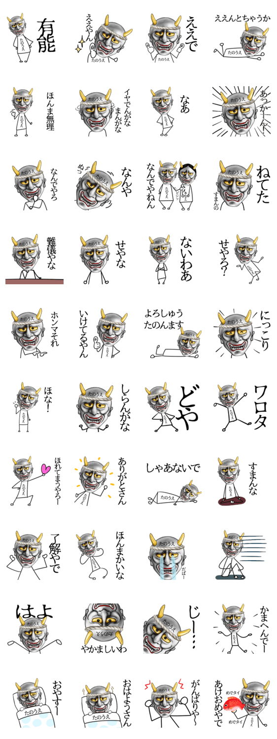 | スタンプ説明 | Tanoue たのうえ タノウエ 田上 田ノ上 田之上 田野上用の個性的でインパクトがある関西弁のなまえ入り般若スタンプ♪ |