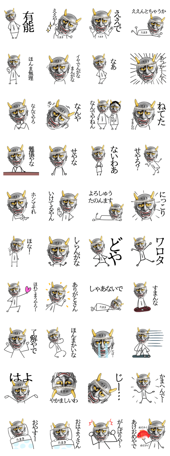 | スタンプ説明 | Tamaki たまき タマキ 環 玉木 玉置 玉城 玉巻 田巻用の個性的でインパクトがある関西弁のなまえ入り般若スタンプ♪ |