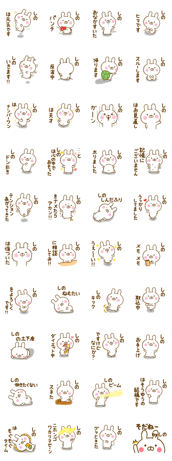 ゆる~く、かわいい、うさぎ(うさひな)の☆しの☆が使う名前スタンプ第2弾です♪