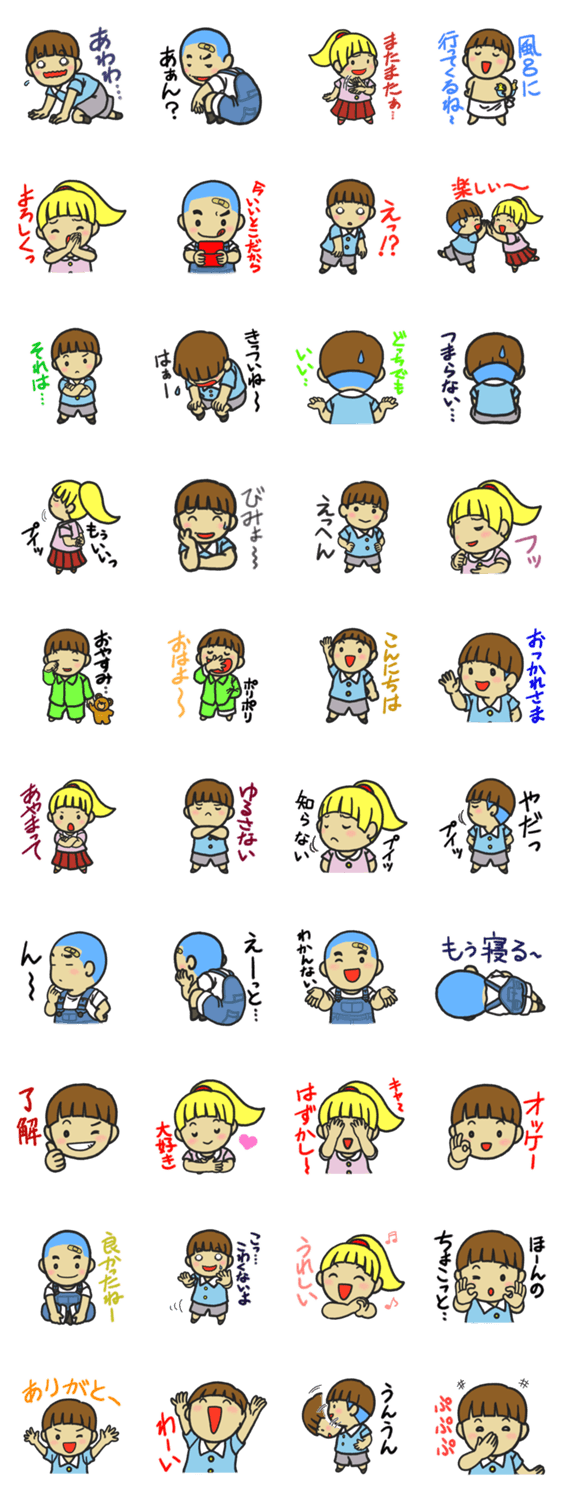 可愛くて、でも、ちょっと生意気な子供たちが繰り広げる、日常で使えるスタンプです。
