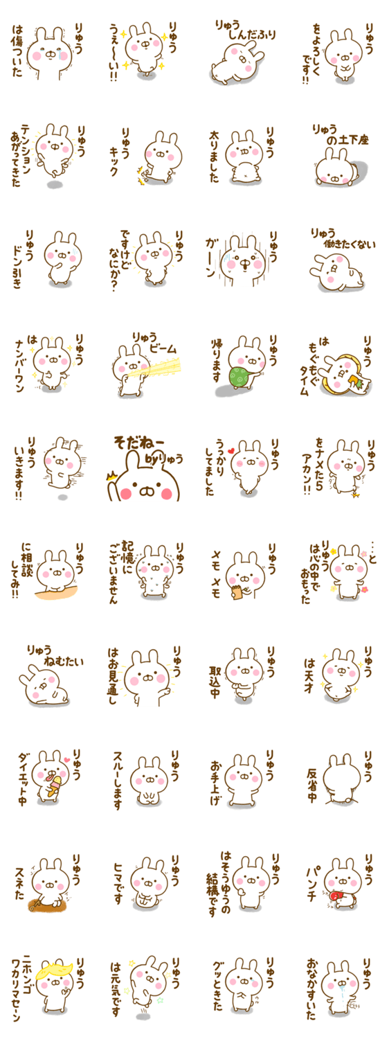 ゆる~く、かわいい、うさぎ(うさひな)の☆りゅう☆が使う名前スタンプ第2弾です♪