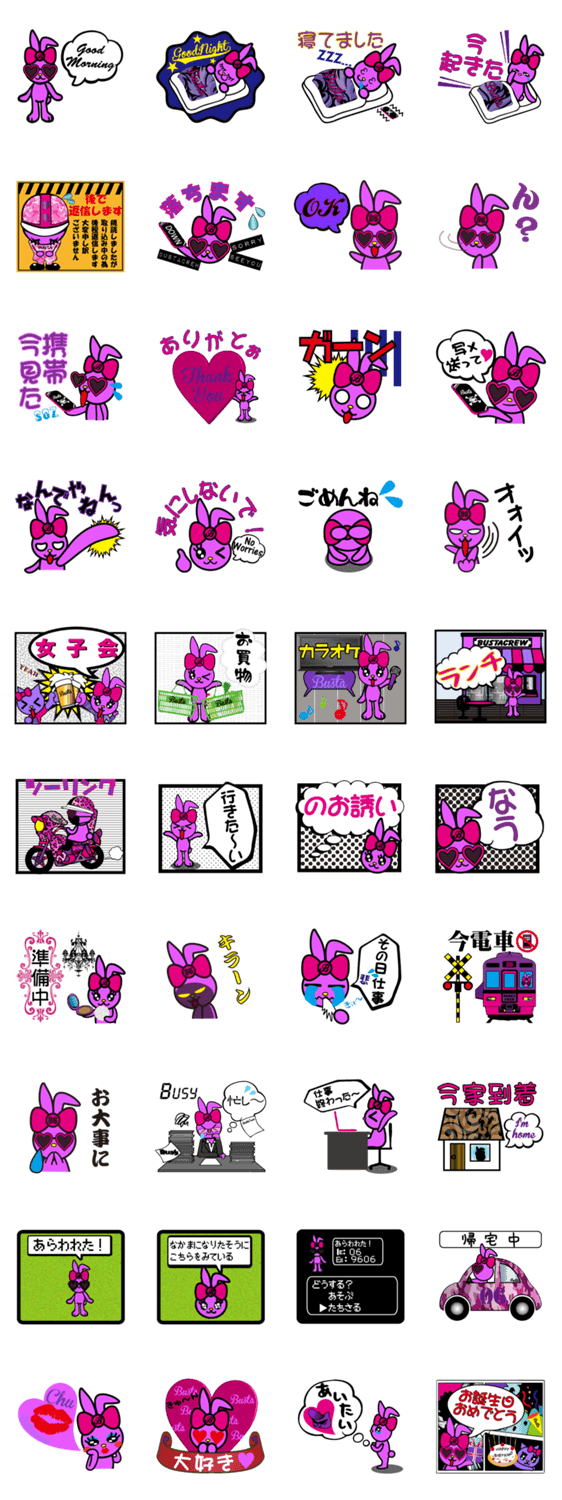 他にはない独自のスタンプで大好評のBUSTAから第2弾バスタバニーは女の子仕様! 使えるものを取り揃えたからとっても便利!漫画コマ風は組み合わせて使えるオリジナルstyle