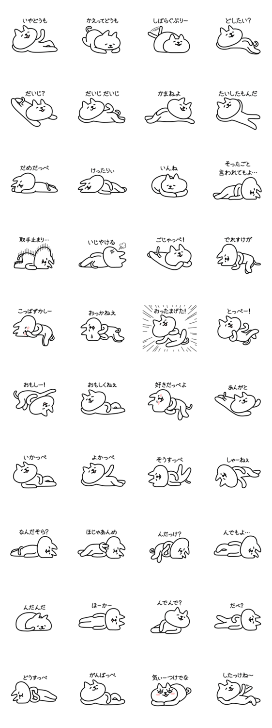 猫スタンプ「ニャマケモノ」の第5弾。ねころぶネコの茨城弁バージョン。栃木の方もどうぞ。