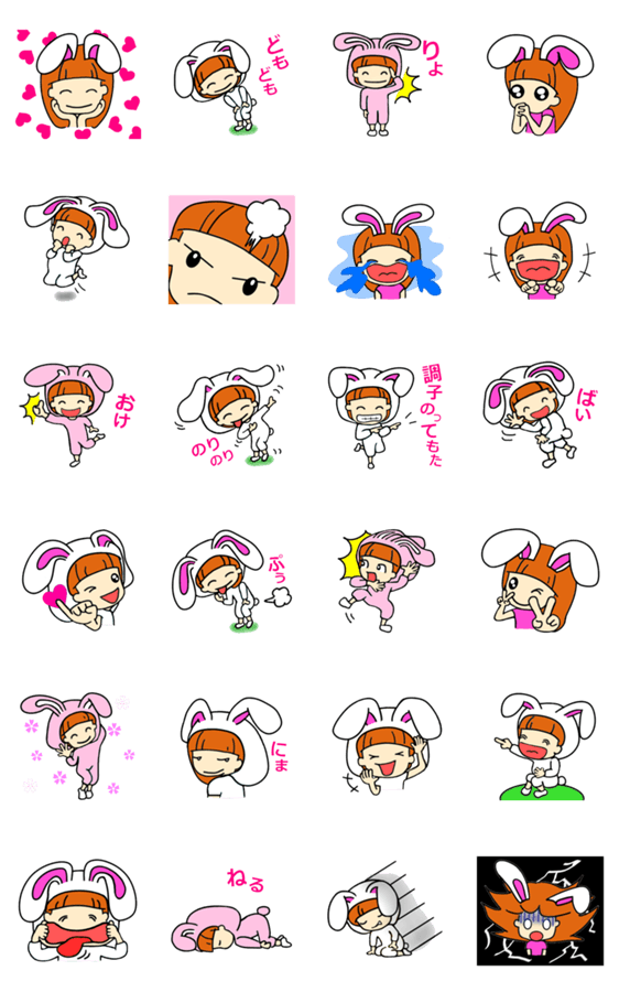 うさぎ年生まれの女の子が使えるスタンプ。 かわいいうさぎに変身!
