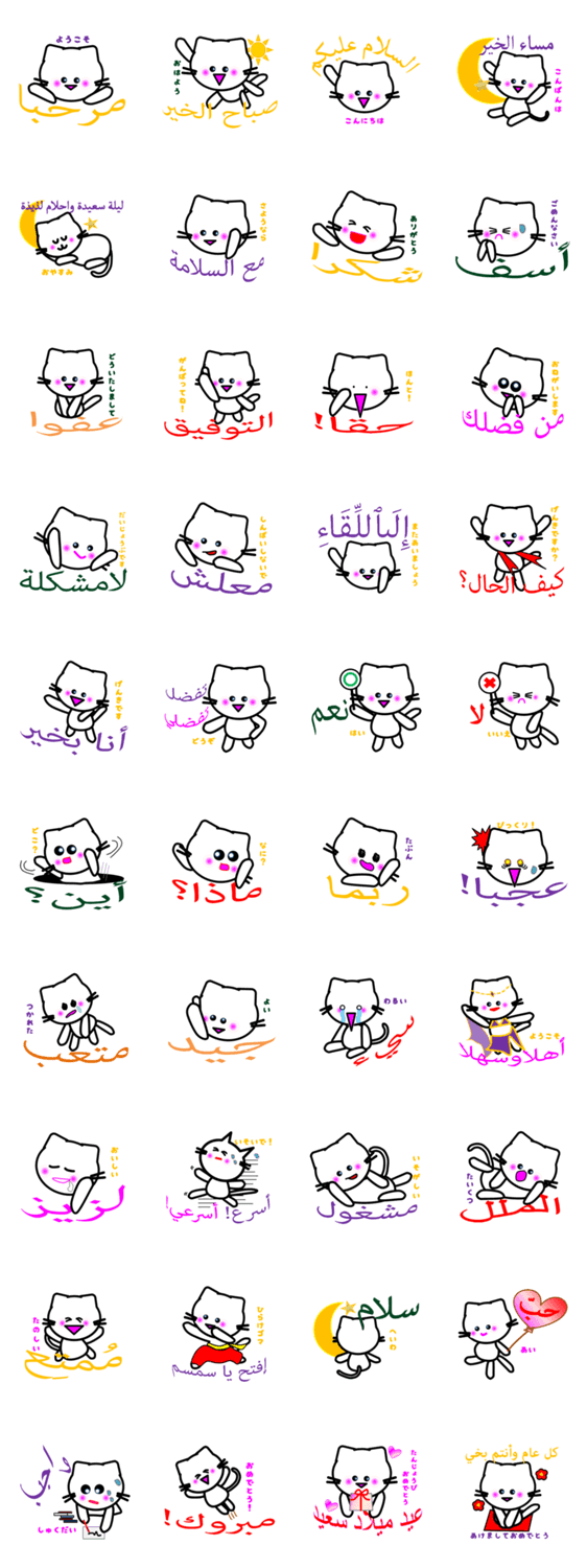 アラビア語であいさつしよう!アラビア語をモチーフにしたねこのスタンプです。アラビア語を使っている人も使っていない人も使ってみてください。