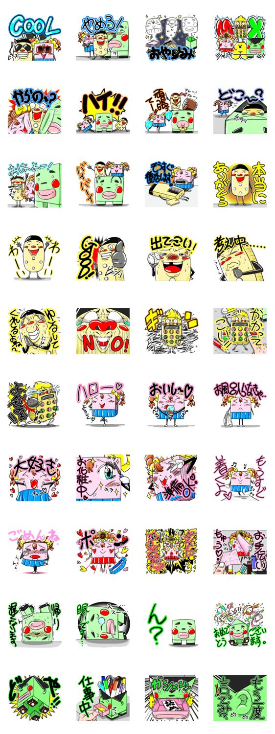デスクの文具が動き出した!電卓のたっくん!メモパッドのメモリーちゃん!ペン立てのたてお!仲良し3きょうだいが迫力あるスタンプで日常会話を盛り上げてくれます!!